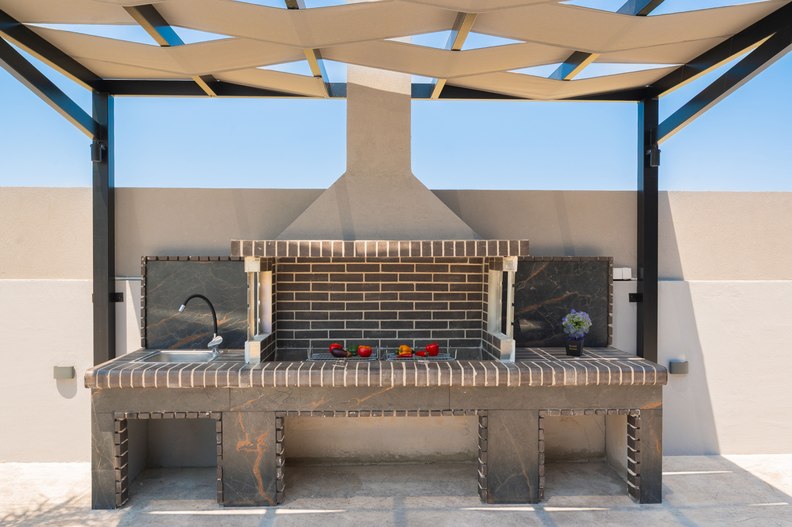 For those who enjoy dining under the stars, the villa boasts a fully equipped BBQ area, perfect for hosting al fresco meals with loved ones. An outdoor shower is also available, adding an extra touch of convenience after a refreshing swim or a day in the sun.
